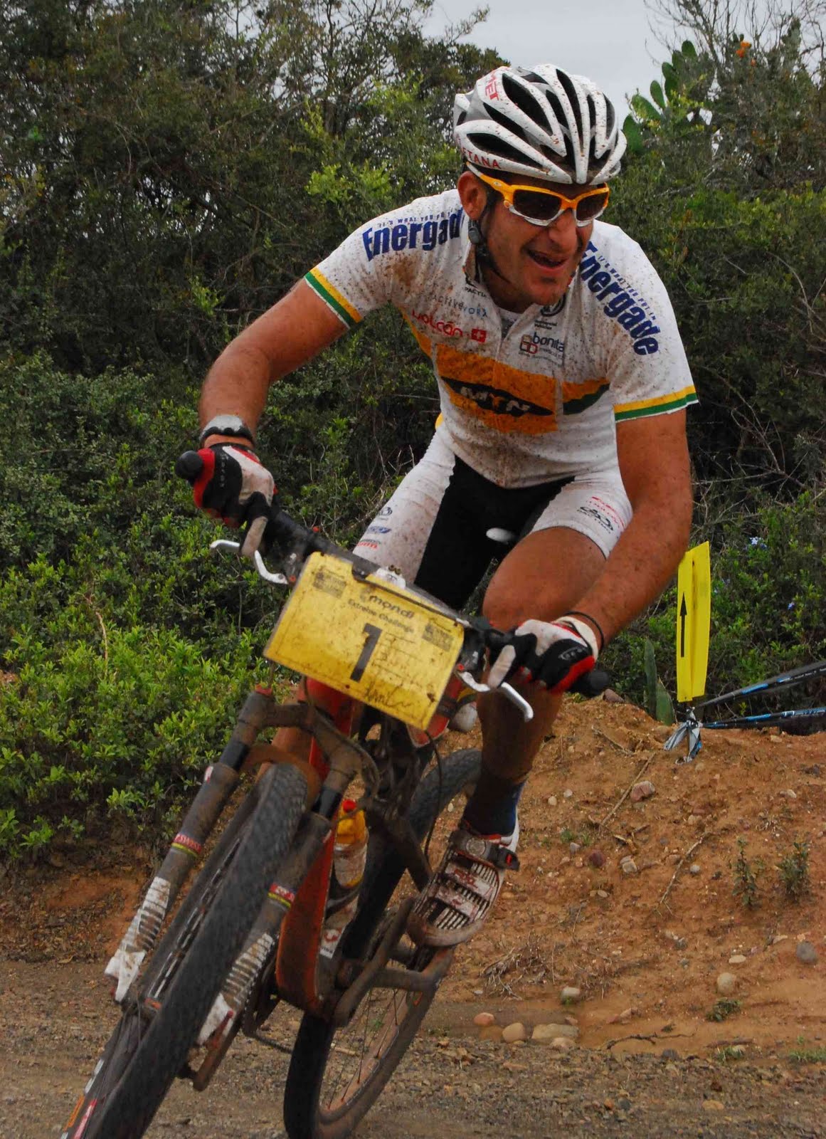 I wanted a good result in the fifth race, as this would cement my chances of the overall series win, so decided to race smart and play a bit of a waiting game to see how the body was, and also how the competition was looking. In the first part of the race I was feeling really comfortable, and the decision to ride my Volcan full suspension was paying off, as the course was proving to be very rough and technical. The group had split after about 20km and soon it was down to about six riders, team mate Adrien Niyonshuti, Dave George(SA Findit), Max Knox and Brandon Stewart(DCM) and Marc Bass(Garmin/Adidas). However no one was really keen to make the racing and I knew I would have to take control sooner or later. I waited until about 75km, just past the feed zone to put my effort in. On one of the long rocky drags I rode a hard tempo and saw only Dave George responding, Max was battling to keep in contact after an early crash had left him slightly rattled. As I increased the tempo, our gap went up over the rest of the riders. Dave and I worked well to further our gap and I could relax now, knowing that even if Dave were to beat me, I should have done enough to secure the series. We still had to be careful though, all the way to the finish to avoid a mechanical or puncture.